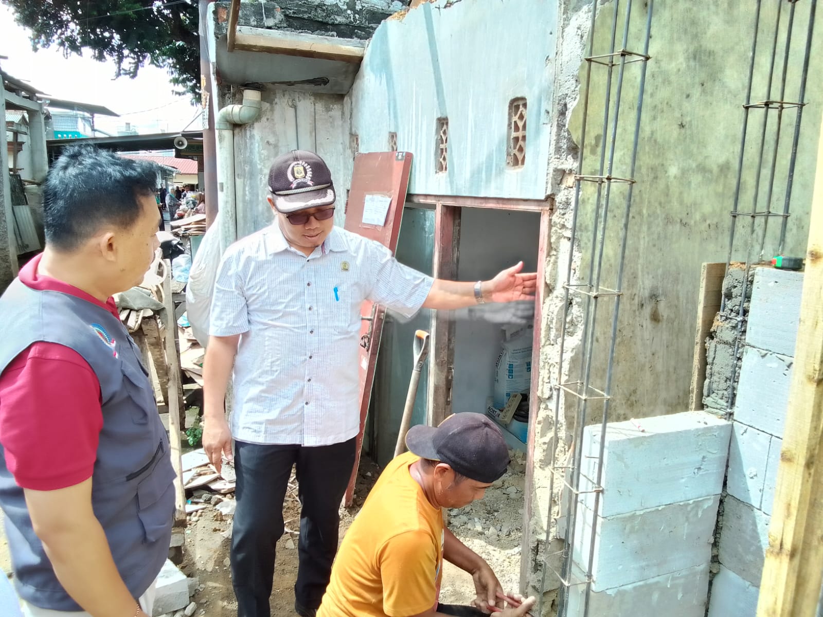 H. Achmad Fathoni, Anggota Komisi III DPRD Kabupaten Bogor Fraksi PKS dari Dapil II meninjau langsung Rumah Tidak Layak Huni Yang sedang dalam tahap pengerjaan di Desa Cicadas, Kecamatan Gunung Putri (Foto: Deni Supriadi)