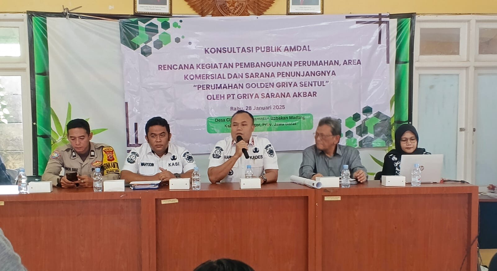 AKTUALITA.CO.ID – Kepala Desa Cijayanti, H. Ahmad Paojan, menyampaikan sejumlah catatan penting terkait dampak lingkungan dan sosial dalam kegiatan konsultasi publik Analisis Mengenai Dampak Lingkungan (AMDAL) perumahan Golden Griya Sentul oleh PT Griya Sarana Akbar, di Aula Kantor Desa Cijayanti, Rabu (28/1/2026)