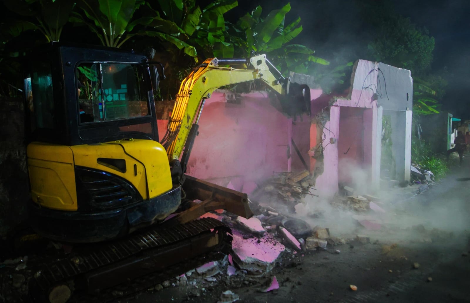 Dari total bangunan tersebut, sebanyak 10 unit dibongkar secara mandiri oleh pemiliknya. Sementara empat bangunan lainnya terpaksa dibongkar menggunakan alat berat karena kondisi konstruksi yang tidak memungkinkan untuk dibongkar sendiri.