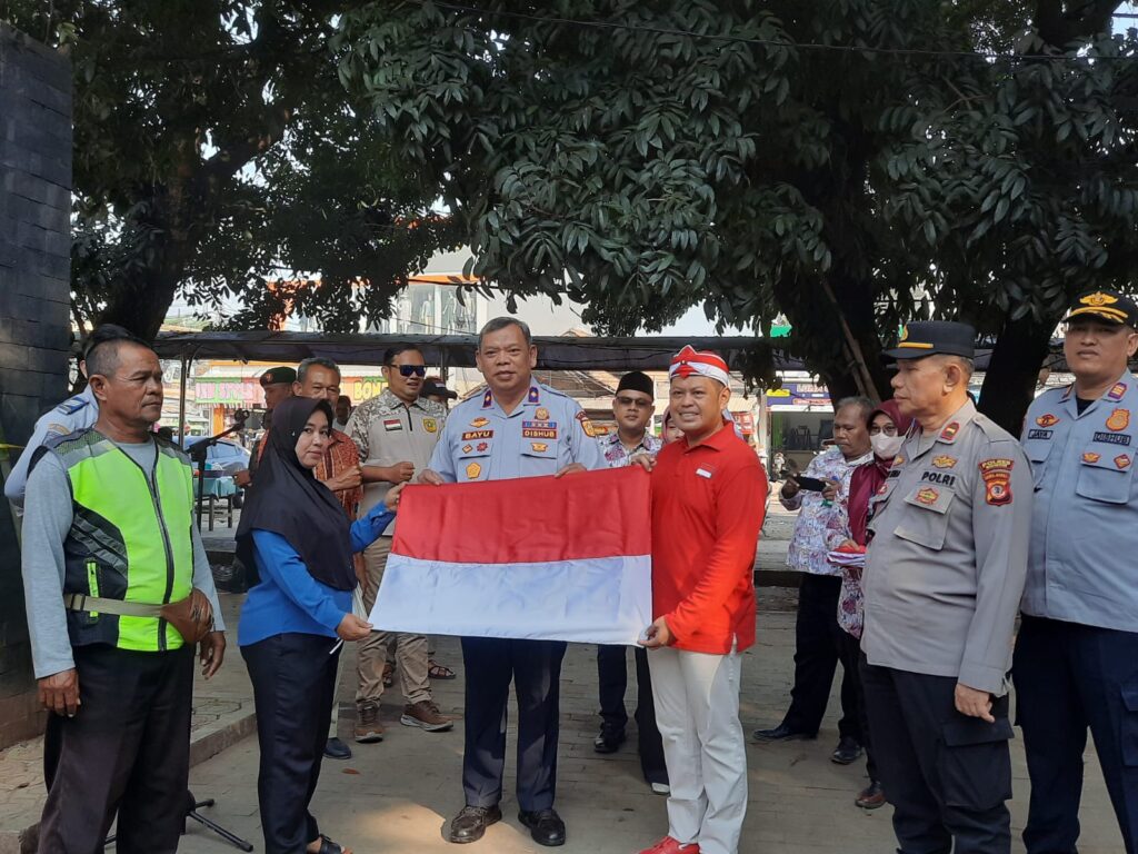 Aktualita.co.id – Menjelang Hari Ulang Tahun (HUT) kemerdekaan Repubik Indonesia ke-80 pada 17 Agustus 2025. Andri Rahman, Camat jonggol, Kabupaten Bogor beserta Kepala Dinas Perhubungan (Dishub) Kabupaten Bogor menjalankan perintah Bupati Bogor dengan membagikan bendera merah putih kepada masyarakat serta para pengendara roda dua dan roda empat yang melintas di Alun-alun Jonggol, Jumat (01/08/25).
