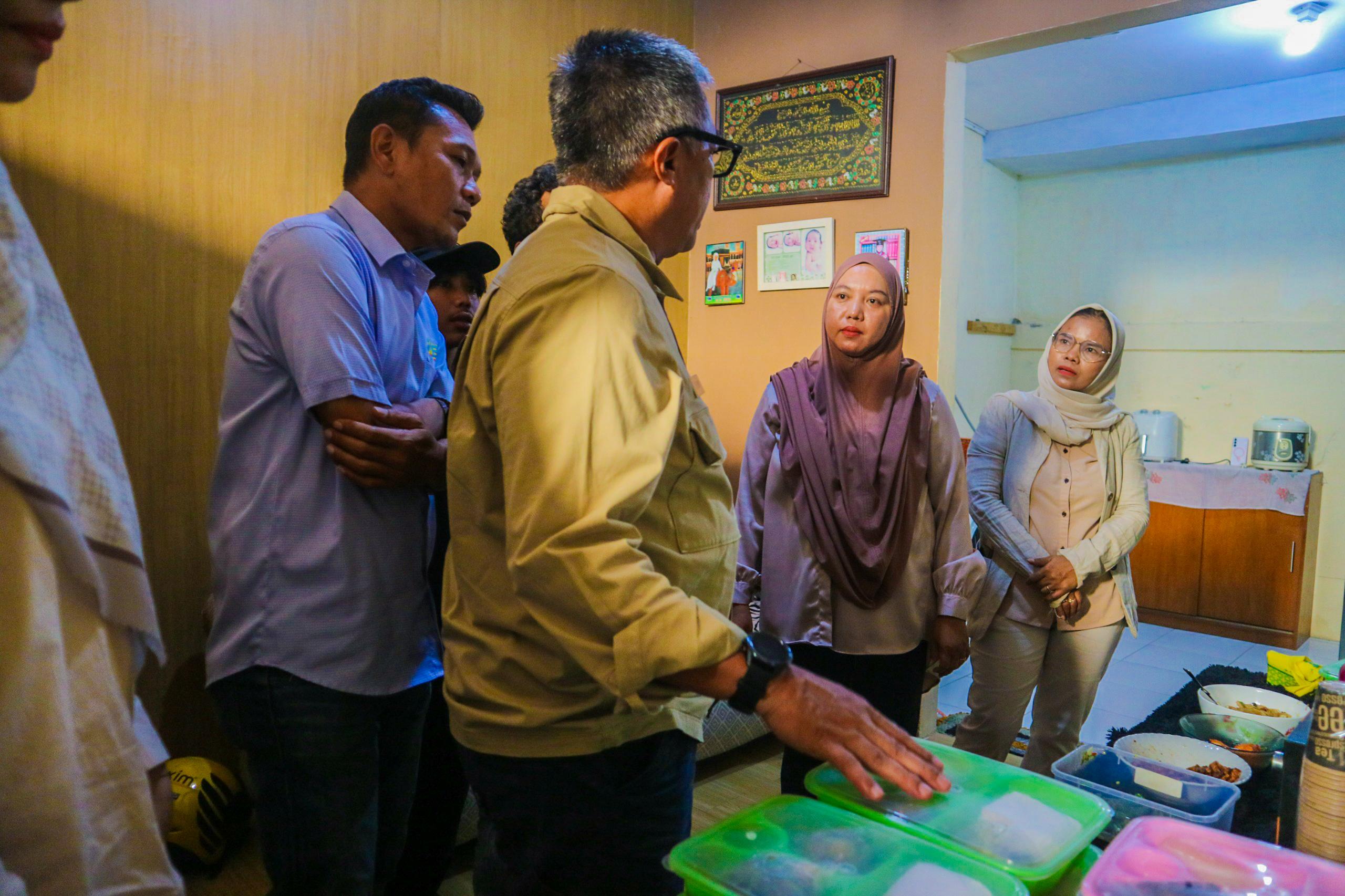 Didampingi Kepala Dinas Sosial (Kadinsos) Kota Bogor, Atep Budiman, Denny Mulyadi mengecek kondisi sarana prasarana yang digunakan, mulai dari dapur, cara memasak, menu makanan, ketepatan waktu pengiriman makanan, dan lainnya.