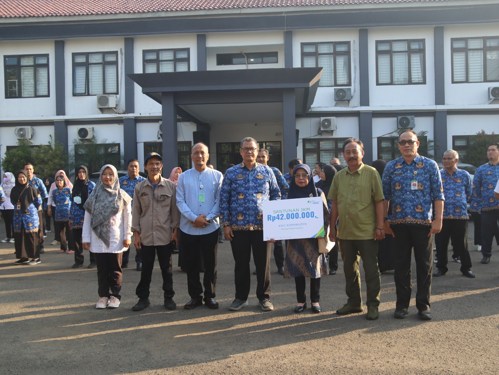 AKTUALITA.CO.ID _ Siti Latifah, Salahsatu ahli waris penyuluh pertanian Swadaya Kabupaten Bogor yang tergabung dalam Kontak Tani Nelayan Andalan (KTNA) Kabupaten Bogor menerima klaim jaminan kematian atas nama Kiki yang diserahkan langsung oleh Sekretaris Distanhorbun Kabupaten Bogor, Tatang Mulyadi. Sabtu (20/7/24).