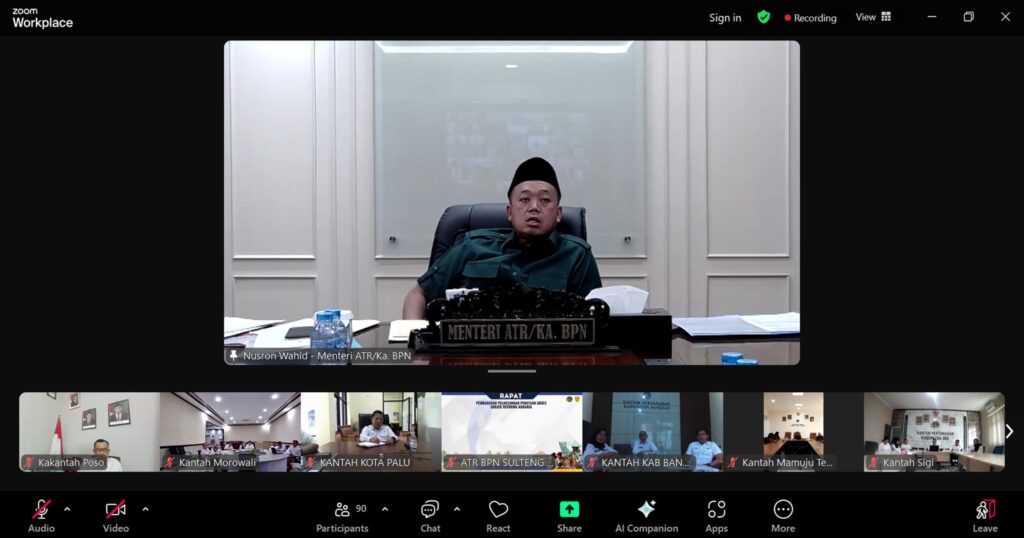 AKTUALITA.CO.ID _ Mengawali tahun 2025, Menteri Agraria dan Tata Ruang/Kepala Badan Pertanahan Nasional (ATR/BPN) Nusron Wahid menegaskan, pentingnya peningkatan pelayanan pertanahan secara optimal di wilayah Sulawesi Tengah dan Sulawesi Barat. Hal ini disampaikan dalam pengarahan daring kepada jajaran Kantor Wilayah (Kanwil) BPN kedua provinsi tersebut pada Kamis (02/01/25).