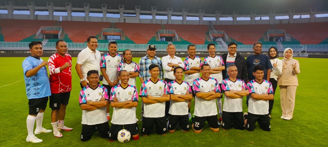 AKTUALITA.CO.ID _ Pertandingan sepak bola Fun Game Trofeo U-45 yang di dalamnya terdapat 3 tim antaranya All Star Bogor Timur, tim DPRD Kabupaten Bogor dan Ikastusi Fc. Pertandingan ini berlangsung di Stadion Pakansari, Cibinong. Selasa (12/11/24).