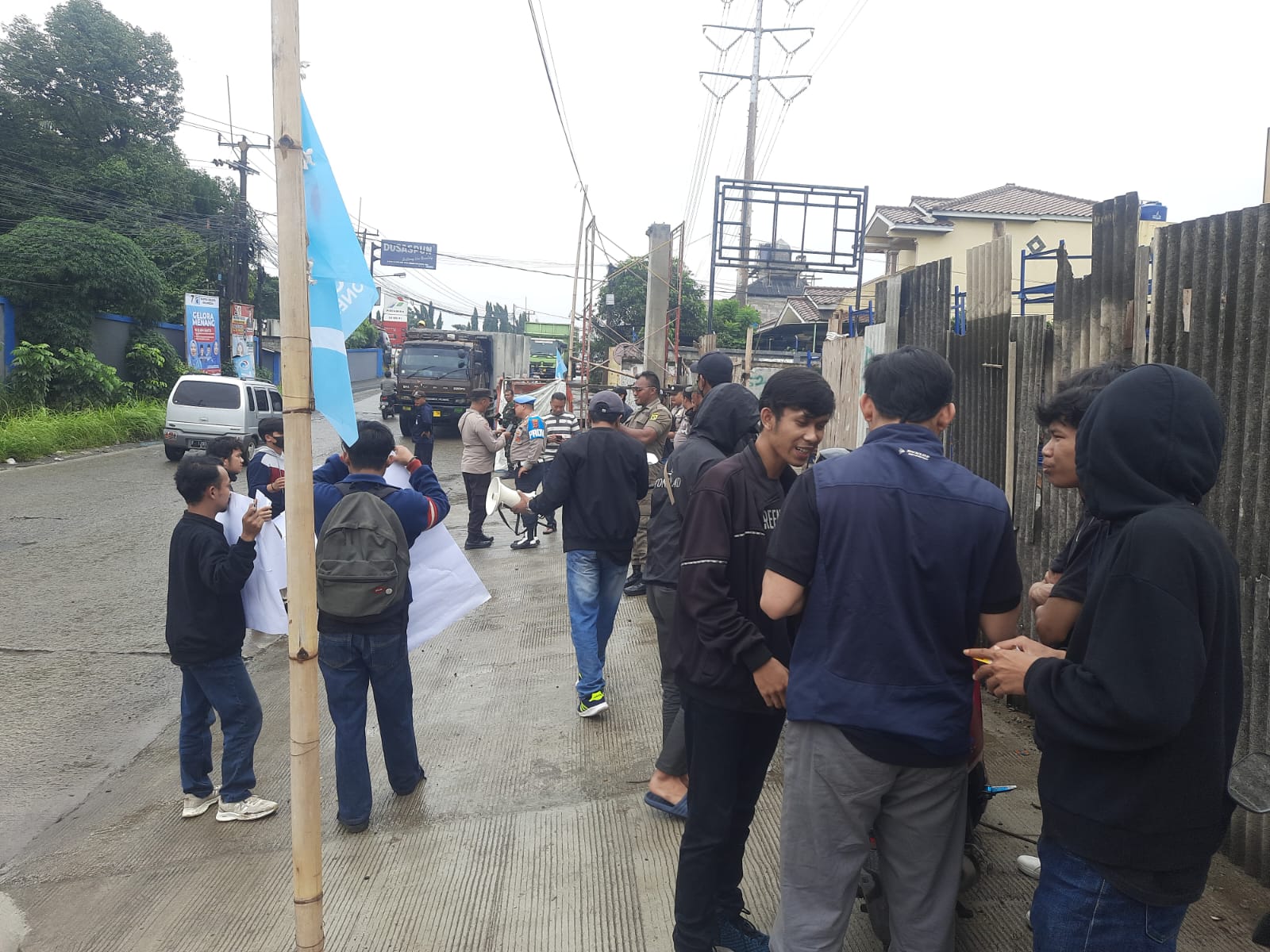 AKTUALITA.CO.ID – Geregetan dengan kinerja Sat Pol PP yang seharusnya bertindak sebagai penegak perda, tapi justeru tak bisa bergerak apalagi bertindak. Dengan adanya pelanggaran perda yang dilakukan oleh salah satu perusahaan di Desa Tlajung Udik membuat puluhan mahasiswa dari Gerakan Mahasiswa dan Pemuda Republik Indonesia (DPD GMPRI) Kabupaten Bogor demo pabrik ban PT Putra Mega Purnama di Jalan Raya Narogong, Desa Tlajung Udik, Gunung Putri. Diduga Melanggar Peraturan Daerah (Perda) no 4, 2015 tentang ketertiban umum (Tibum) Senin (29/01/24).