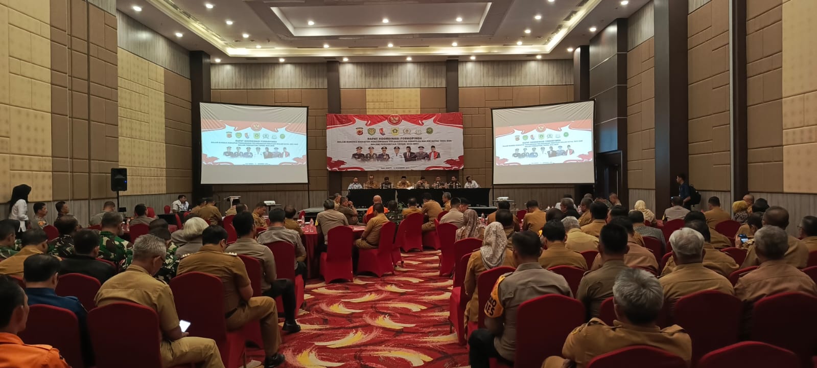 AKTUALITA.CO.ID _ Pemerintah Kabupaten (Pemkab) Bogor menggelar rapat koordinasi bersama Forum Koordinasi Pimpinan Daerah (Forkopimda) dalam rangka kesiapan pengamanan perayaan malam Natal 2024 dan malam pergantian Tahun Baru 2024-2025. Rapat tersebut dipimpin langsung oleh Pejabat (Pj) Bupati Bogor Bachril Bakri di Bigland Sentul, Kabupaten Bogor. Senin (16/12/24).