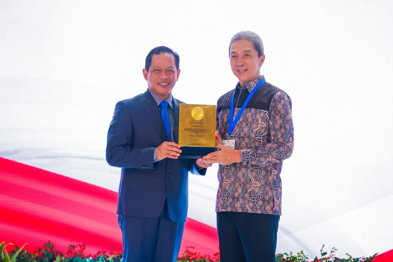 Penghargaan predikat Kota Menuju Bersih diterima langsung Wali Kota Bogor, Dedie A Rachim saat mengikuti Rapat Koordinasi Nasional (Rakornas) Pengelolaan Sampah 2026 yang digelar Kementerian Lingkungan Hidup/Badan Pengendalian Lingkungan Hidup (KLH/BPLH), Rabu (25/2/2026).