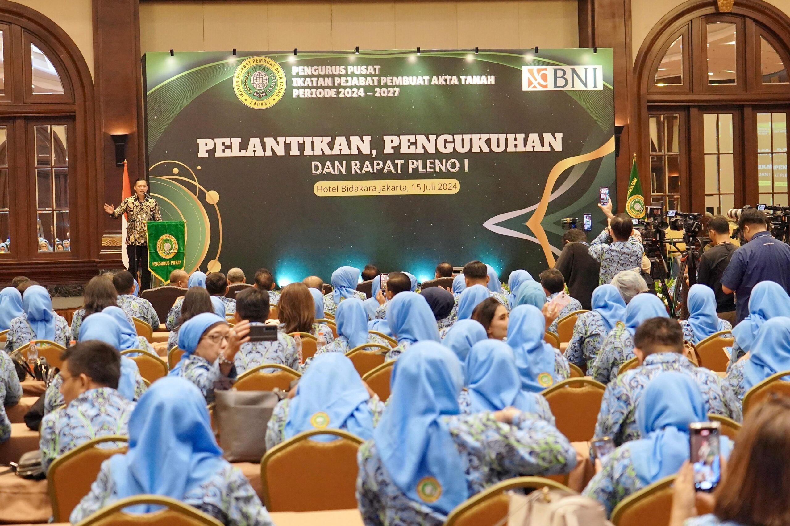 AKTUALITA.CO.ID _ Menteri Agraria dan Tata Ruang/Kepala Badan Pertanahan Nasional (ATR/BPN), Agus Harimurti Yudhoyono (AHY) mengukuhkan 667 orang sebagai Pengurus Pusat Ikatan Pejabat Pembuat Akta Tanah (PP IPPAT) masa bakti 2024-2027 di Hotel Bidakara, Jakarta pada Senin (15/07/24).