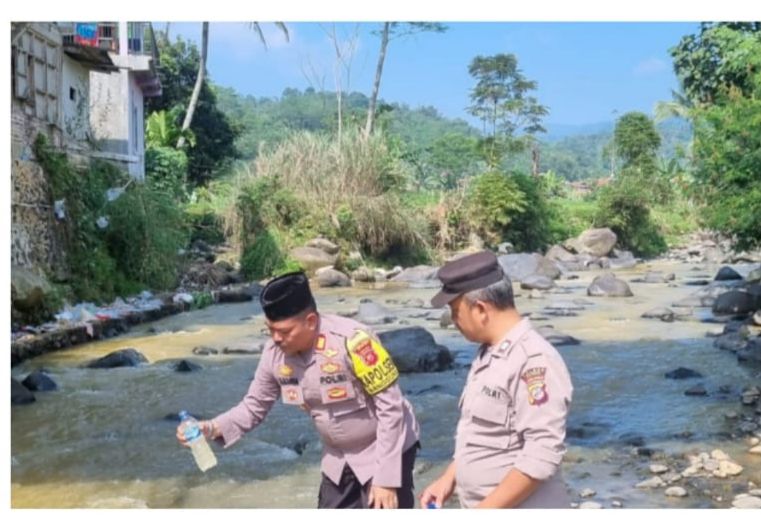 AKTUALITA.CO.ID _ Polsek Nanggung melakukan pengecekan sepanjang Daerah Aliran Sungai (DAS) Cikaniki untuk menyelidiki laporan mengenai kondisi air yang keruh kekuningan, meskipun wilayah tersebut sedang mengalami musim kemarau. Sabtu (20/7/24).