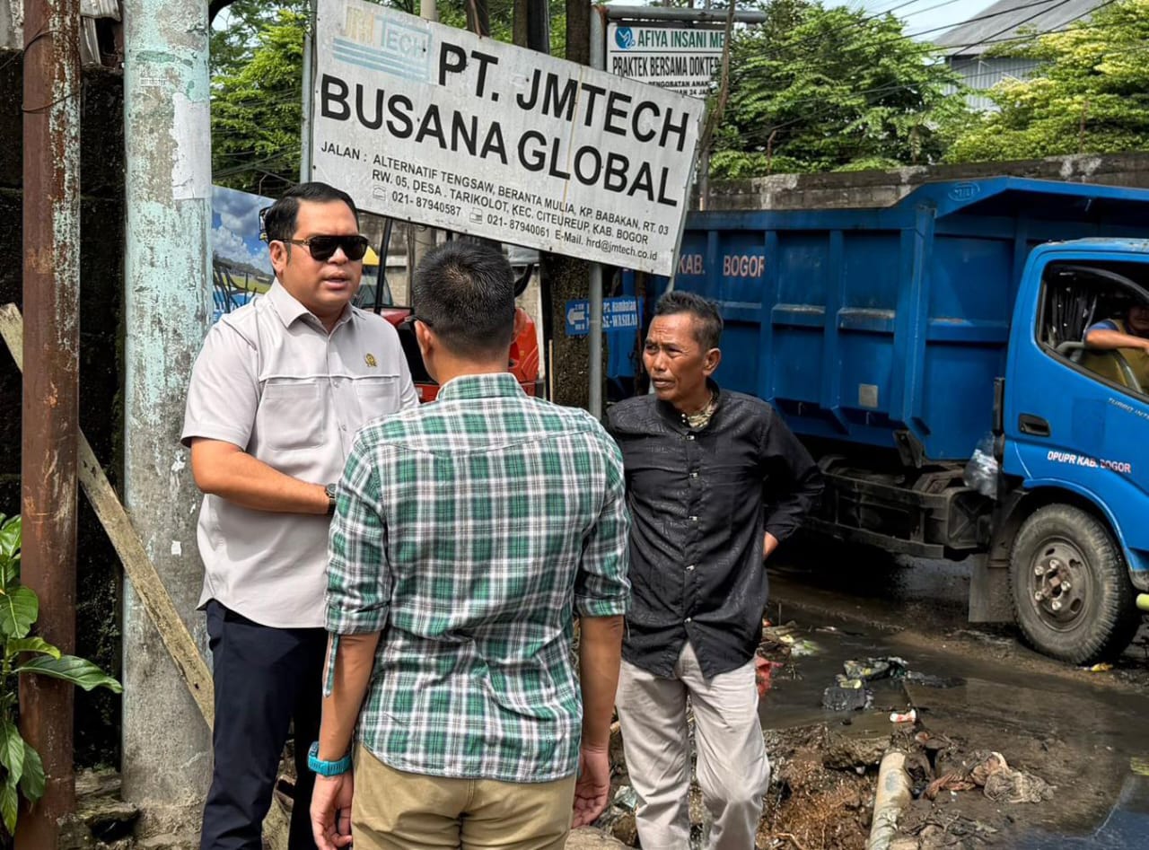 AKTUALITA.CO.ID – Keluhan masyarakat terkait banjir yang kerap terjadi dari tahun ke tahun di Jalan Raya Tengsaw, Kecamatan Citeureup, Kabupaten Bogor, akhirnya mendapat perhatian serius. Ketua Komisi I DPRD Kabupaten Bogor, M. Irvan Maulana, turun langsung ke lokasi untuk meninjau kondisi pascabanjir, Selasa (30/12/25).