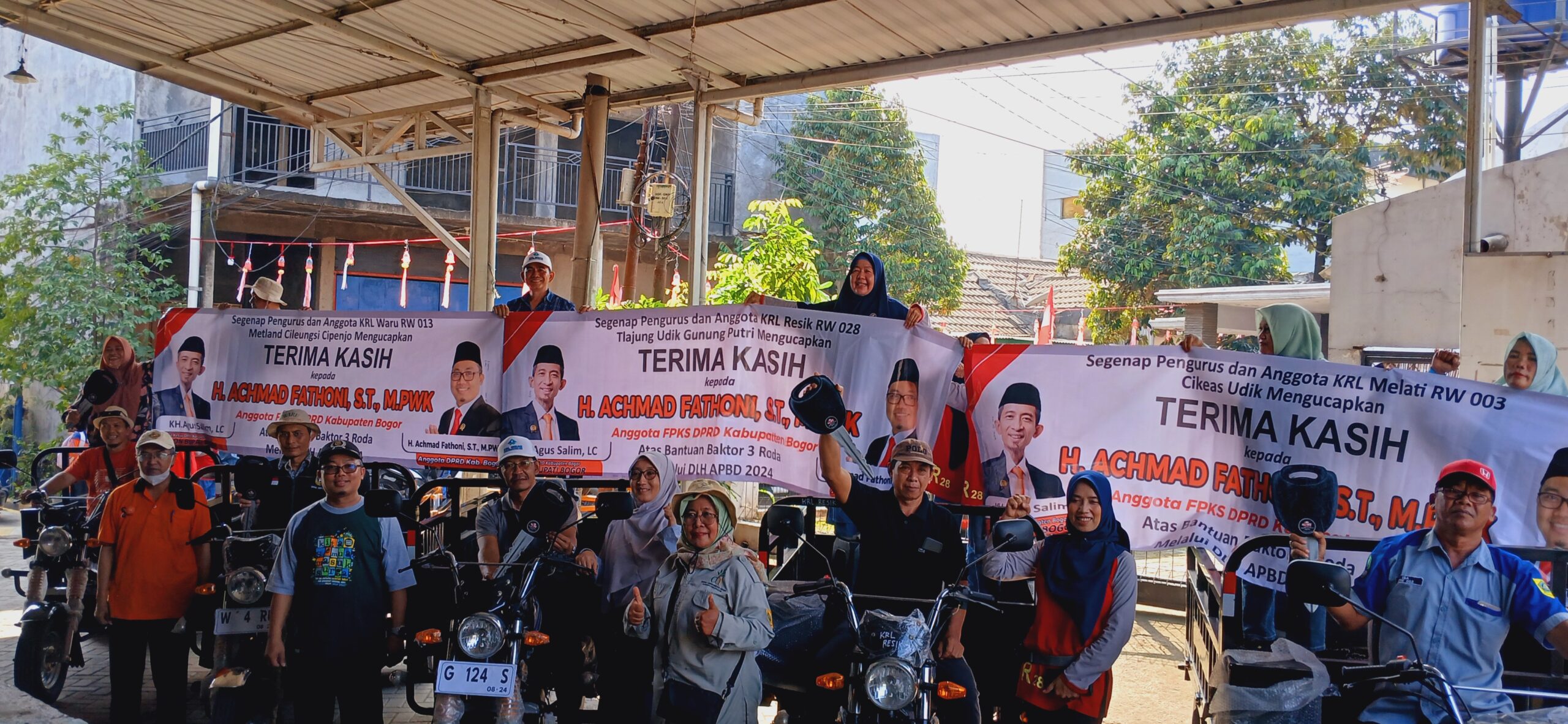 AKTUALITA.CO.ID _ Anggota DPRD Kabupaten Bogor, H.Achmad Fathoni S.T,M.PWK kembali bagikan Bak Motor (BAKTOR) untuk Kampung Ramah Lingkungan (KRL) yang ada di wilayah daerah pemilihannya. Sabtu (3/8/24).