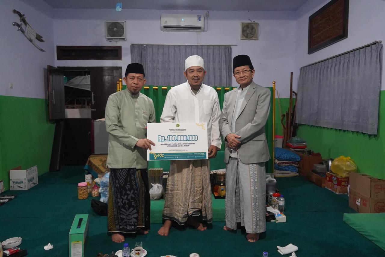 Sebagai bentuk dukungan terhadap pengembangan pendidikan pesantren, Kementerian Agama turut memberikan bantuan sebesar Rp100 juta kepada Pondok Pesantren Walisongo Situbondo. Bantuan ini diharapkan dapat dimanfaatkan untuk meningkatkan sarana dan prasarana pendidikan agar proses pembelajaran semakin optimal, serta memperkuat peran pesantren sebagai pusat pendidikan keagamaan yang adaptif, inklusif, dan berdaya saing. (NS)