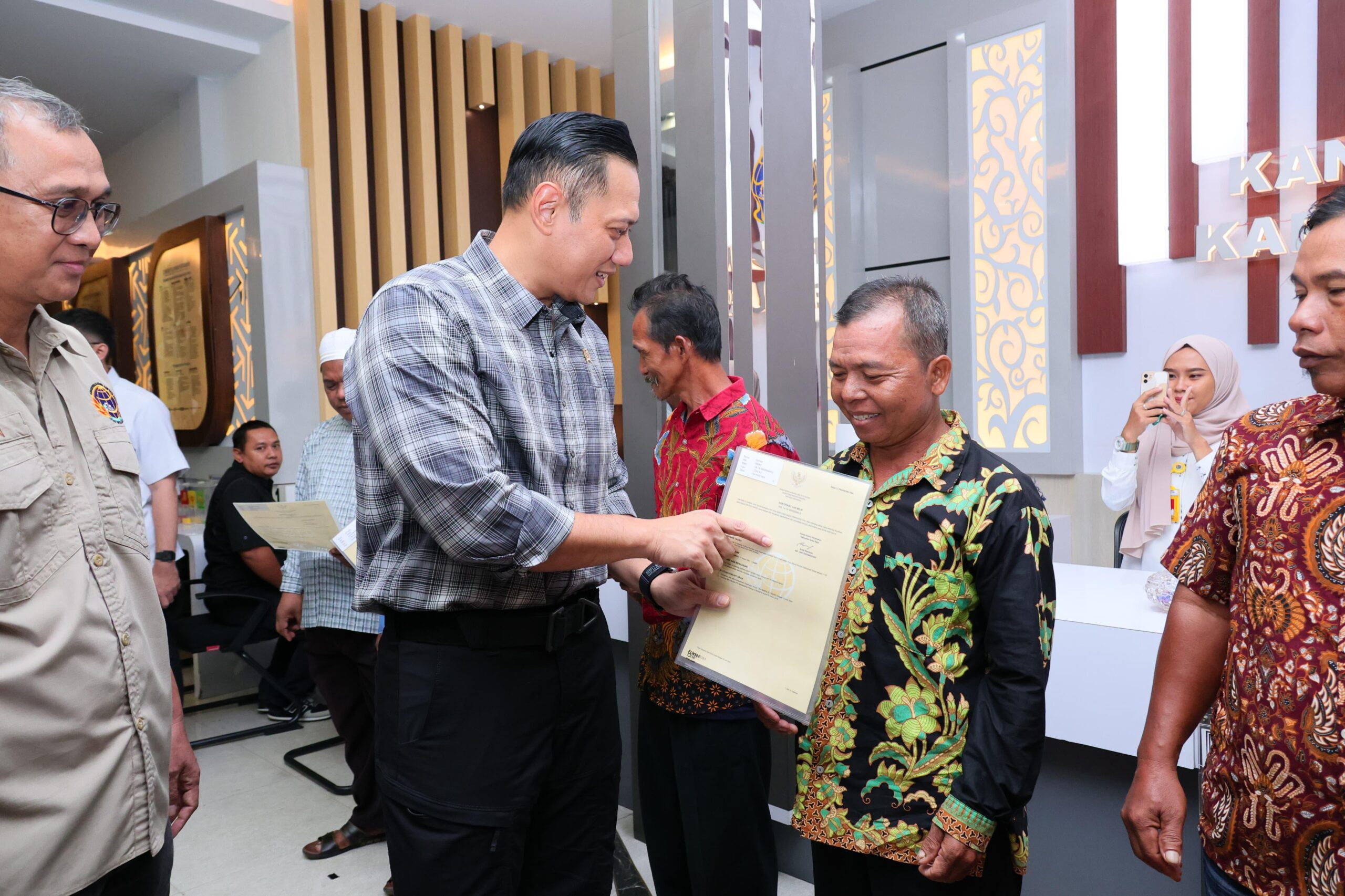 AKTUALITA.CO.ID _ Menteri Agraria dan Tata Ruang/Kepala Badan Pertanahan Nasional (ATR/BPN), Agus Harimurti Yudhoyono (AHY) menyerahkan sepuluh Sertipikat Tanah Elektronik milik masyarakat di Kantor Pertanahan Kabupaten Kubu Raya pada Sabtu (22/06/24). Penyerahan sertipikat di Kabupaten Kubu Raya ini merupakan pertama kalinya Sertipikat Tanah Elektronik diterapkan di Provinsi Kalimantan Barat.