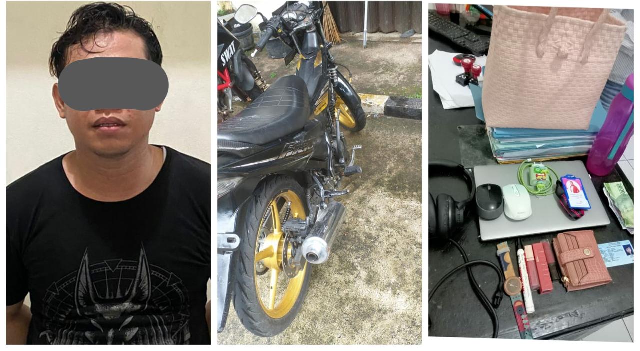 Pelapor, FV (30) seorang pekerja swasta yang tinggal di Mega Sentul Bougenville, melaporkan bahwa tasnya telah dicuri oleh seorang pelaku DS (31), di sekitar area SPBU. Barang bukti yang berhasil diamankan meliputi satu buah Laptop Dell, satu buah dompet berisikan dokumen identitas, satu buah tas, dan satu buah charger laptop.