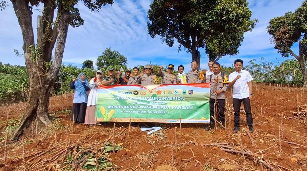 AKTUALITA.CO.ID – Dalam upaya mendukung program Astacita Presiden Republik Indonesia di bidang ketahanan pangan, jajaran Polsek Citeureup Polres Bogor Polda Jawa Barat melaksanakan kegiatan penanaman jagung hibrida di Desa Hambalang, Kecamatan Citeureup, Kabupaten Bogor. Rabu (29/10/25).
