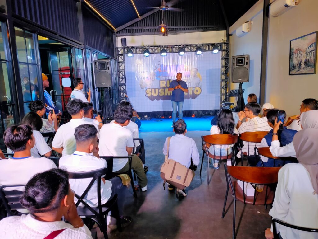 AKTUALITA.CO.ID _ Perkumpulan Key Opinion Leader (KOL) yang beranggotakan Kaum Milenial dan Gen Z yang menjadi Influencer, mengadakan acara Senang Senandung Bareng Rudy Susmanto di Kafe Asimetri Pakansari, Kecamatan Cibinong, pada Minggu (6/10/24).