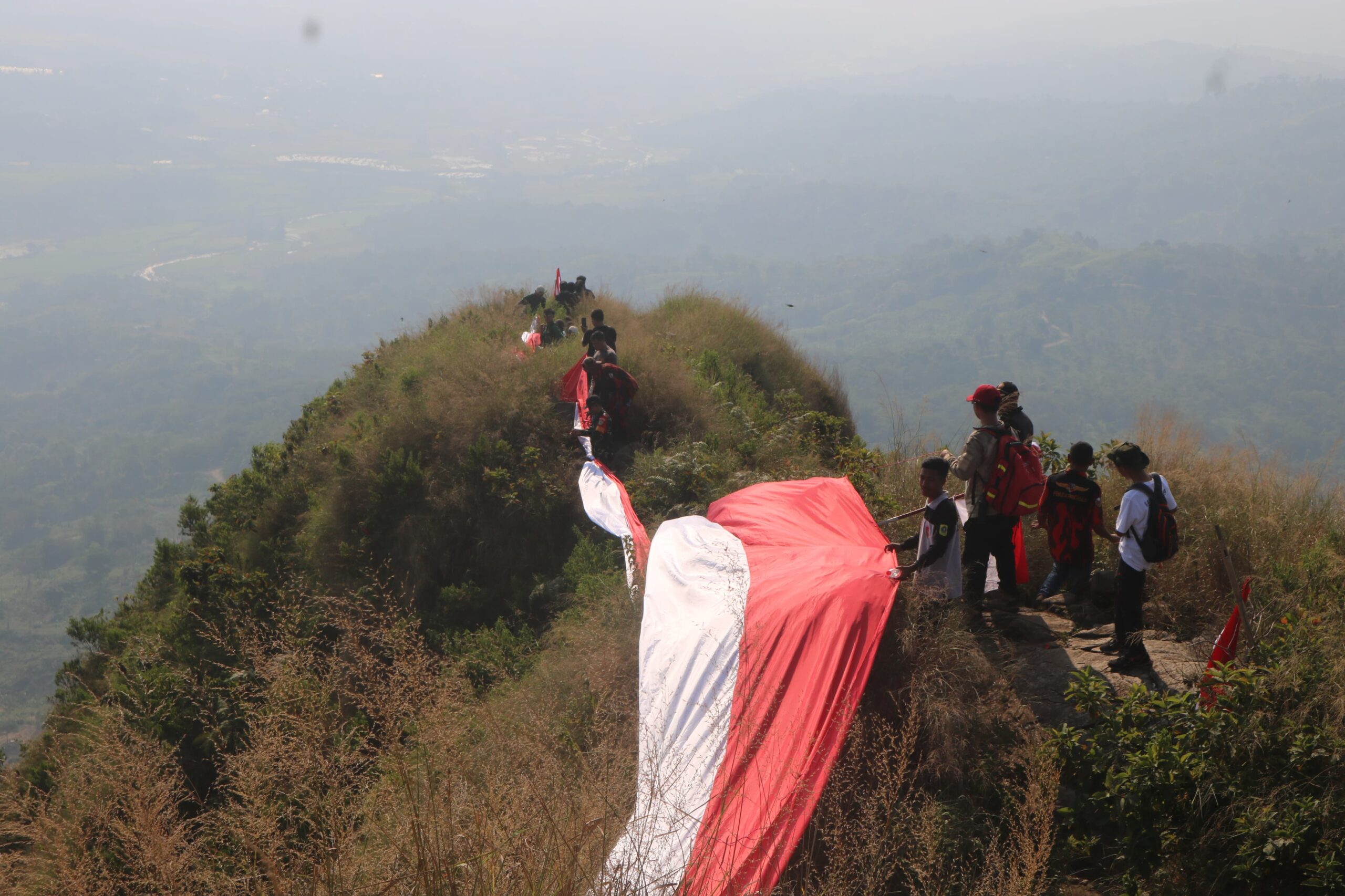 AKTUALITA.CO.ID _ Peringati HUT RI ke-79, Pemerintah Kecamatan Sukamakmur menggelar kegiatan kirab bendera merah putih di Puncak Gunung Batu, Desa Sukaharja, Kecamatan Sukamakmur, Kabupaten Bogor. Rabu (14/08/24) kemarin.