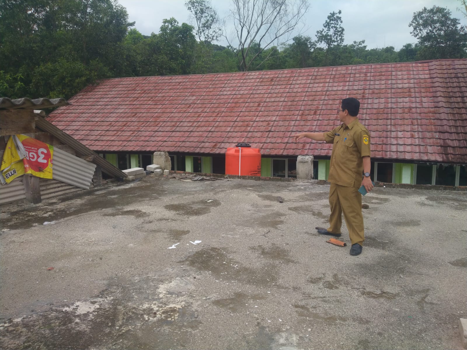 Pasalnya, gedung yang direncanakan bertingkat untuk belajar bagi peserta didik tersebut dikhawatirkan sewaktu-waktu bisa roboh. Sebab, rembesan air yang terus menerus telah membuat kerusakan atap dak beton.