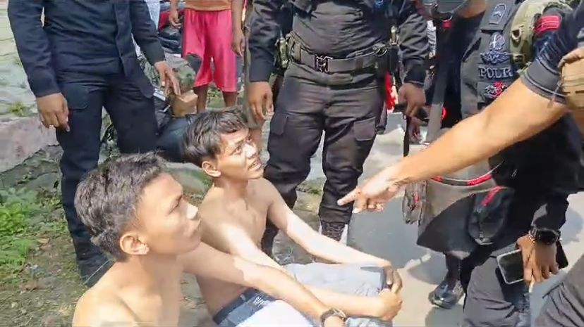 AKTUALITA.CO.ID _ Diduga hendak melakukan aksi tawuran, dua pelajar berseragam putih abu-abu ditangkap Brimob saat melakukan penyerangan terhadap pelajar lain didalam bus, Jalan Raya Bogor, Jum’at (16/8/24)