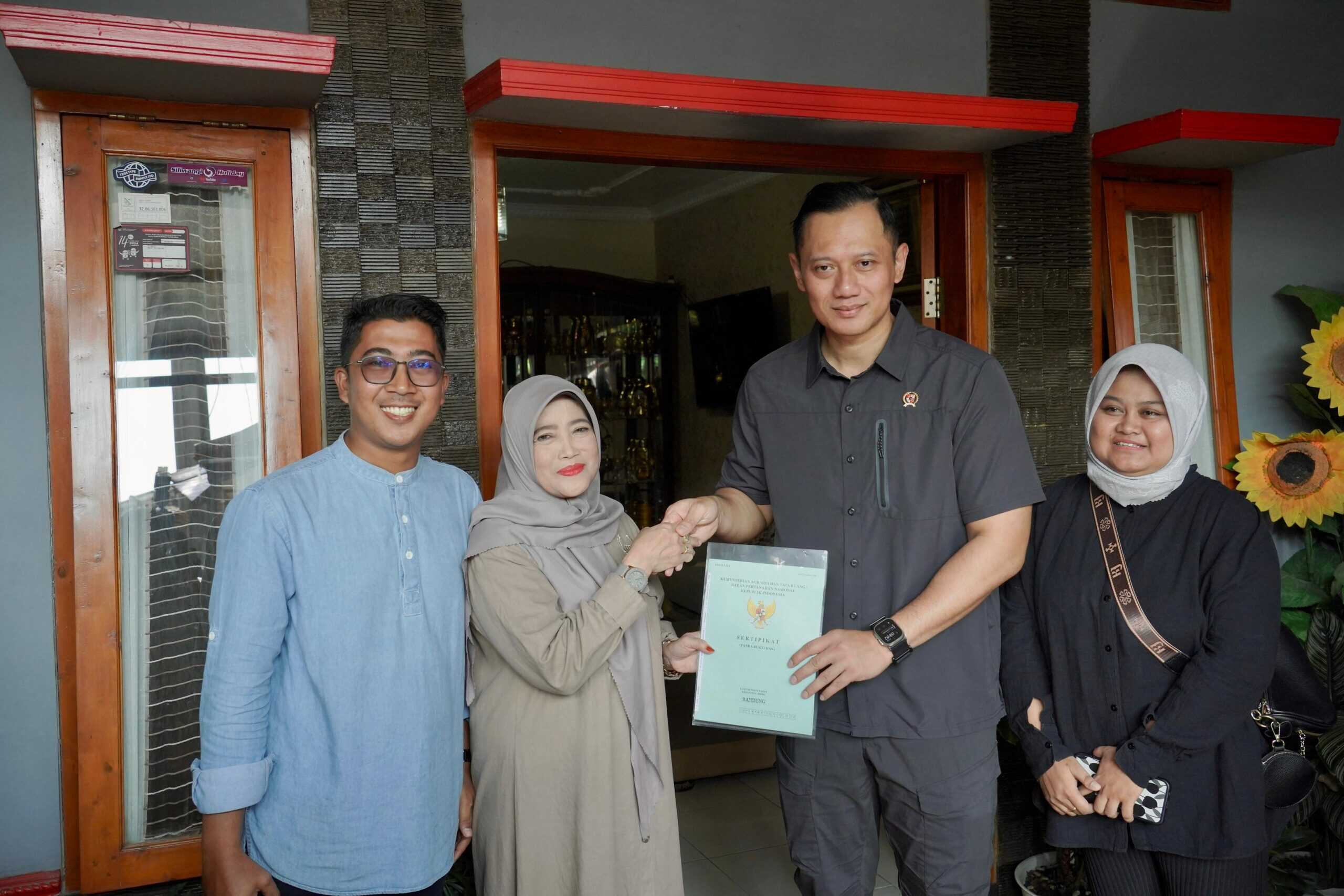 Mumun menerima sertifikat langsung di depan halaman rumahnya dari Menteri Agraria dan Tata Ruang/Kepala Badan Pertanahan Nasional (ATR/BPN), Agus Harimurti Yudhoyono (AHY) pada Minggu (09/06/2024).