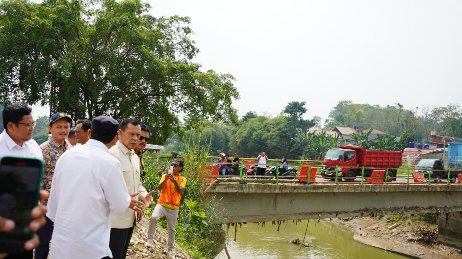 Jaro Ade hadir bersama anggota DPRD Kabupaten Bogor, perwakilan Balai Besar Wilayah Sungai (BBWS), Asisten Perekonomian dan Pembangunan, Camat Gunung Putri, Forkopimcam Gunung Putri, Kepala Desa Bojongkulur dan Kepala Desa Ciangsana, serta tokoh masyarakat setempat.