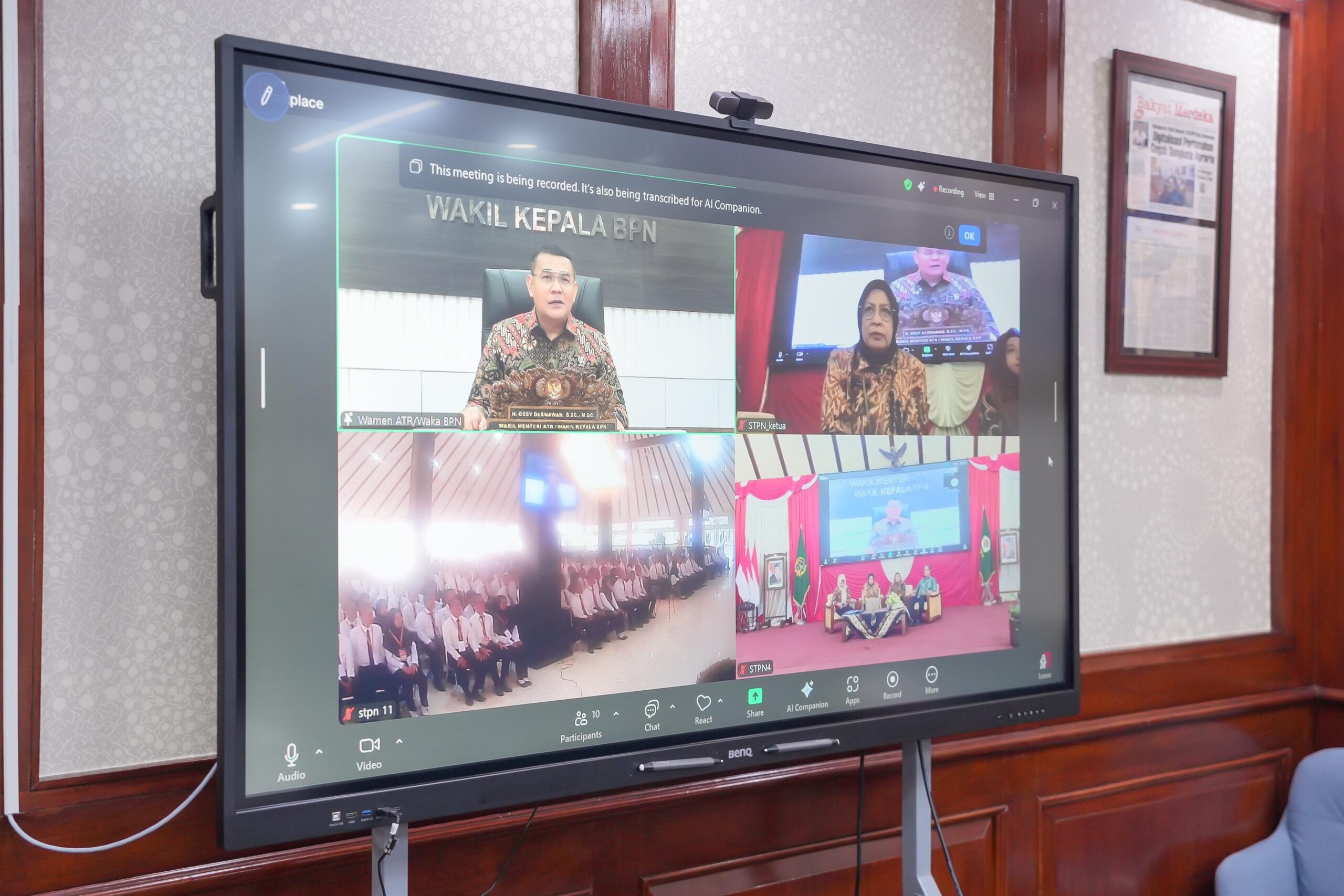 “STPN ini bukan sekadar proses menuntut ilmu, melainkan juga pembentukan karakter dan juga kepemimpinan, serta menjadi panggilan pengabdian kita kepada bangsa dan negara,” tutur Wamen ATR/Waka BPN secara daring kepada taruna baru STPN.